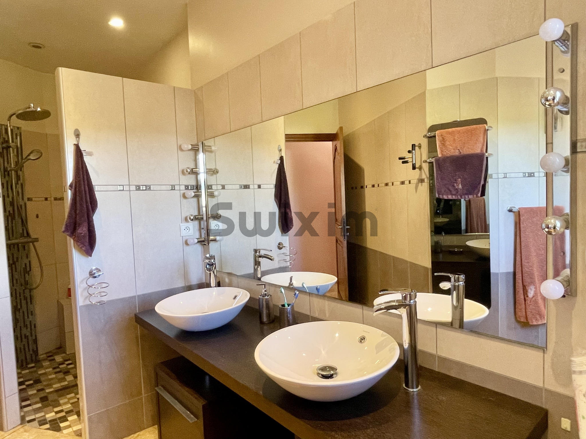 Pensée pour un confort de vie absolu, la propriété propose une somptueuse suite parentale de plain-pied d’environ 35 m², avec bibliothèque, élégamment isolée dans une aile dédiée. Cet étage est complété par un bureau, un accueillant hall d’entrée aménagé et un cellier.