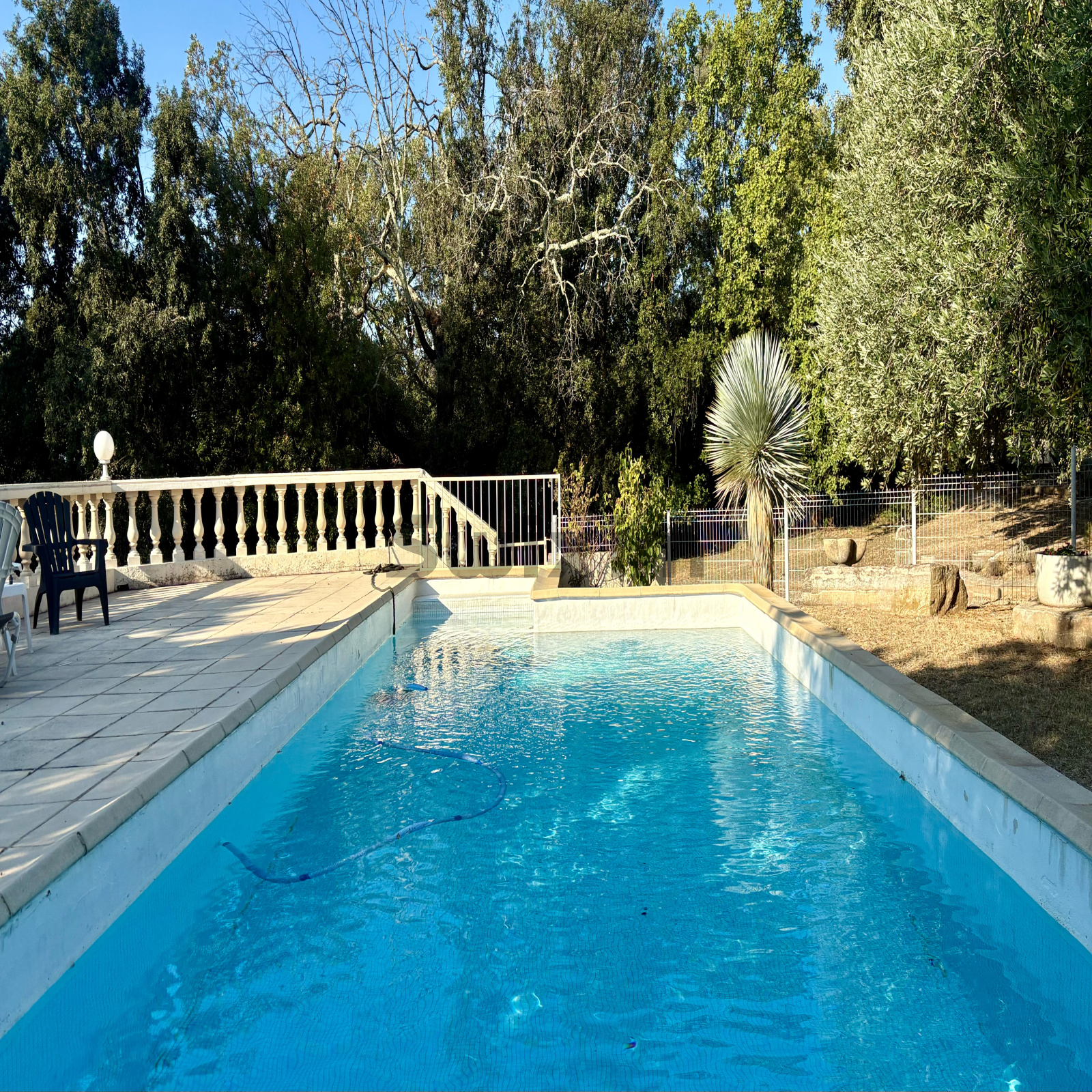 Terrasse ouverte, petite foret, piscine. Fosse à remettre aux normes.