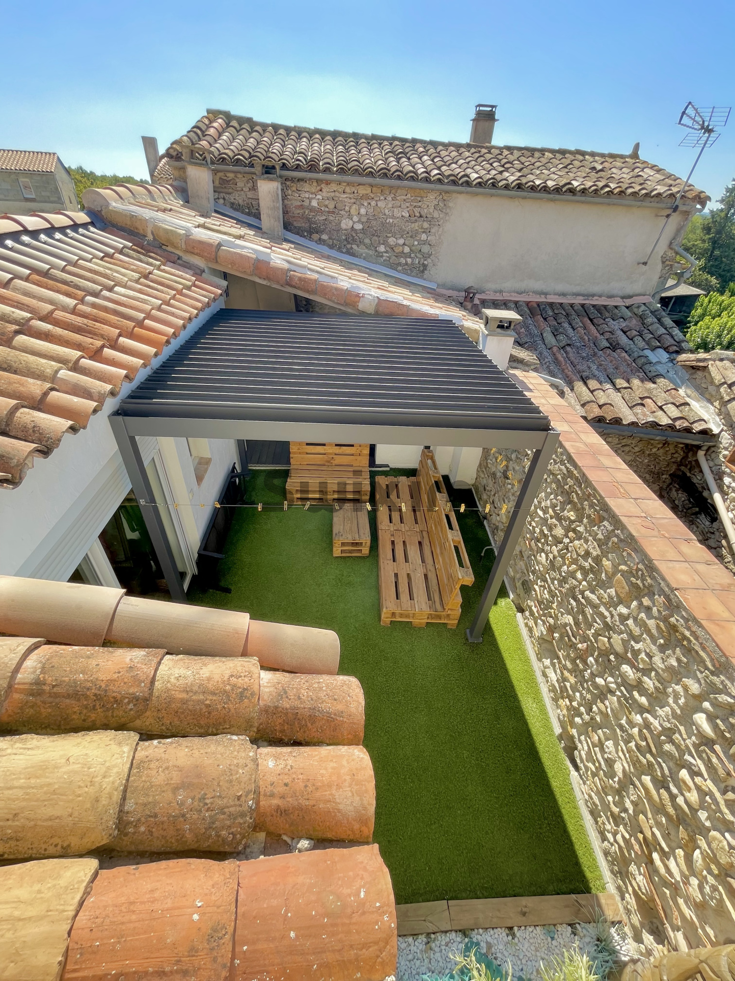Pour compléter ce bien, la terrasse tropézienne constitue un espace de vie à l’abris des regards, équipée de sa cuisine d’été, un four à pizza, un évier en pierre. Une pergola bioclimatique permet de se protéger des rayons du soleil.
