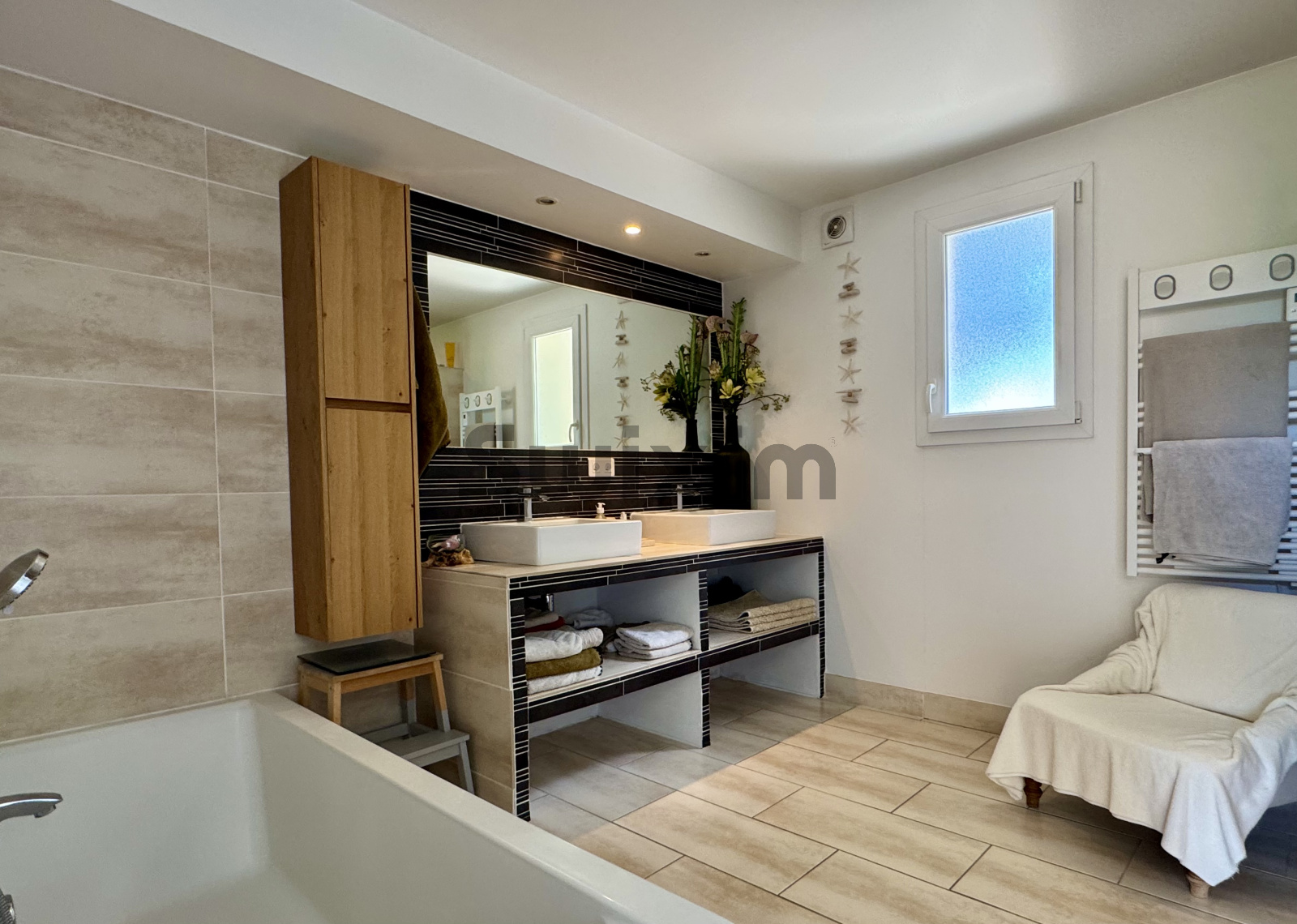 Confort et équipement : Double vitrage, volets électriques, ballon thermodynamique, climatisation réversible séjour, ventilateurs de plafonds dans les chambres, poêle bois, panneaux solaires