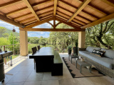L’espace de vie baigné de lumière est sublimé par une belle hauteur sous pente, et par de nombreuses ouvertures sur la végétation. Les volumes sont généreux, structurés autour de cuisine contemporaine, un espace salle à mangée convivial et un salon généreux donnant accès direct sur une belle terrasse couverte. Cet étage est complété par 3 chambres spacieuses équipées de ventilateurs de plafond, dont une suite avec son dressing, une salle de bain, WC.