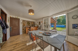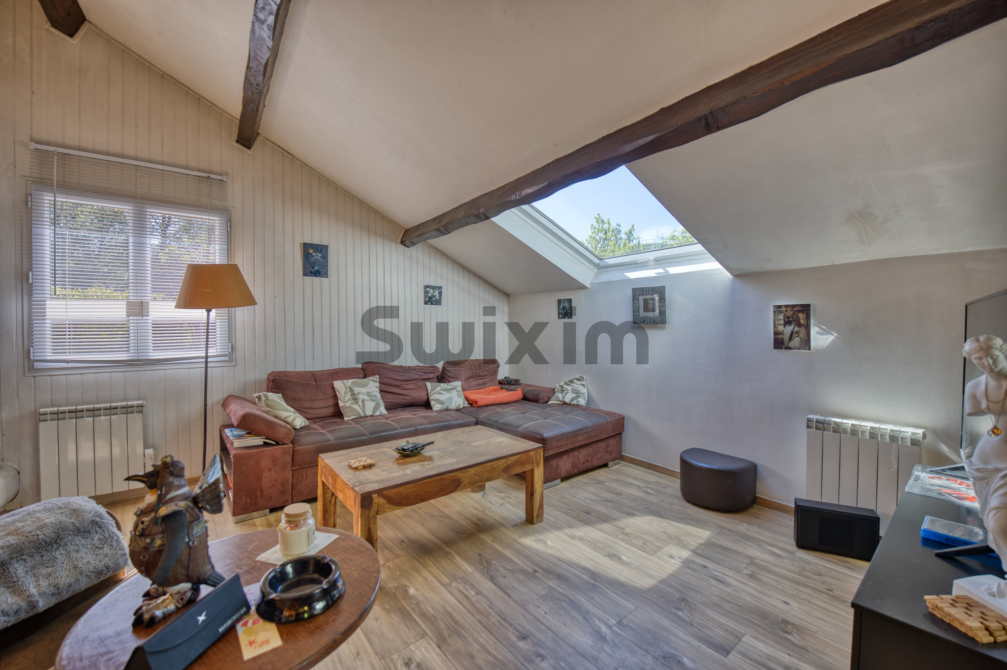 Le bien dispose d'une partie habitation avec Séjour de 48m², Salon ouvrant sur terrasse extérieure et Jardin, idéalement exposé Sud, avec piscine Hors-Sol.